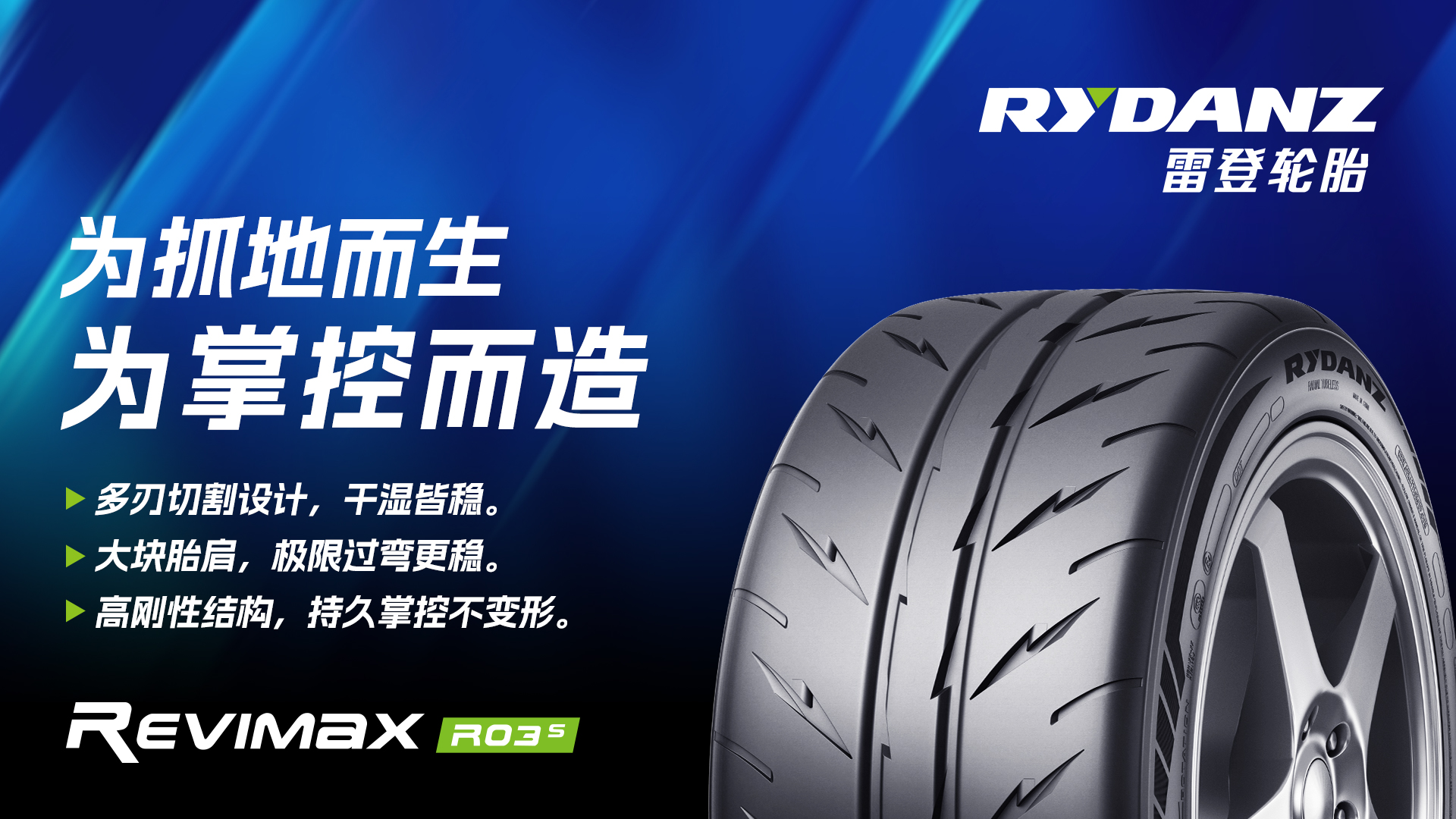 源于赛道的灵感,凝聚于道路的极致表现。REVIMAX R03S 是雷登对高性能驾驭的诠释:一款专为“精准与连接”而生的半热熔轮胎,兼具强劲抓地力与稳定操控,为追求极致驾驶体验的车手而造。