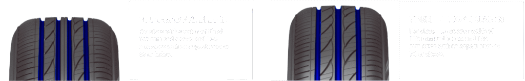 反对称截距排布,交错的花纹沟降低胎面噪音,保证胎面均匀磨耗。