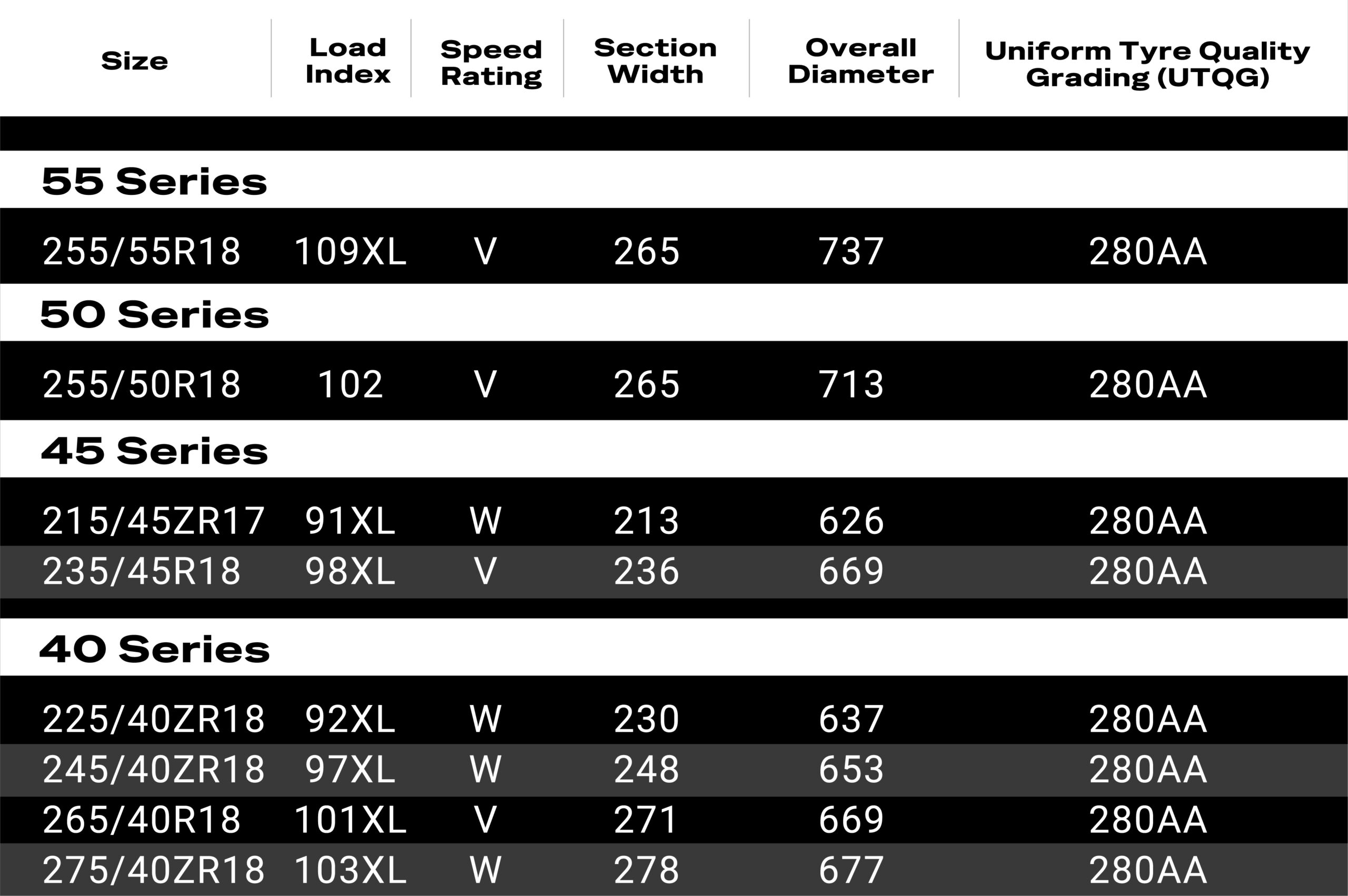 精益求精的转向精度和非凡的运动性能, 为高性能狂热者而生,拥有强劲操控性能的超级运动型轮胎。